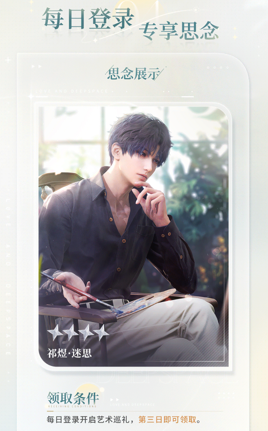 七日内可免费领取四星思念「祁煜·迷思」。