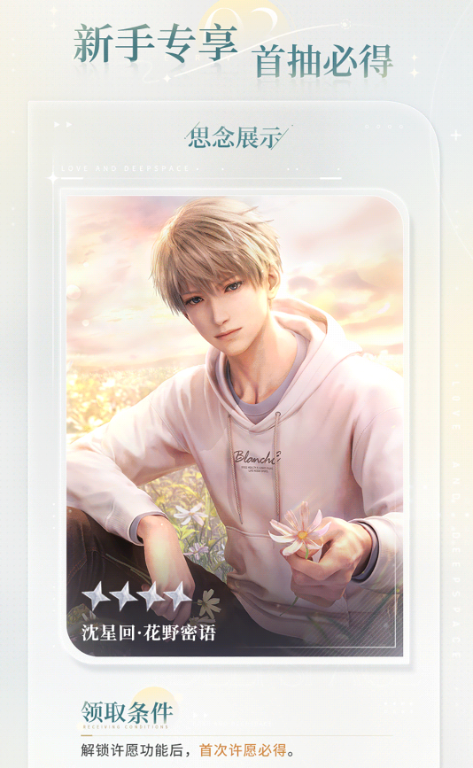 四星思念「沈星回·心晴攻略」、「祁煜·心晴游戏」、「黎深·心晴邂逅」三选一。