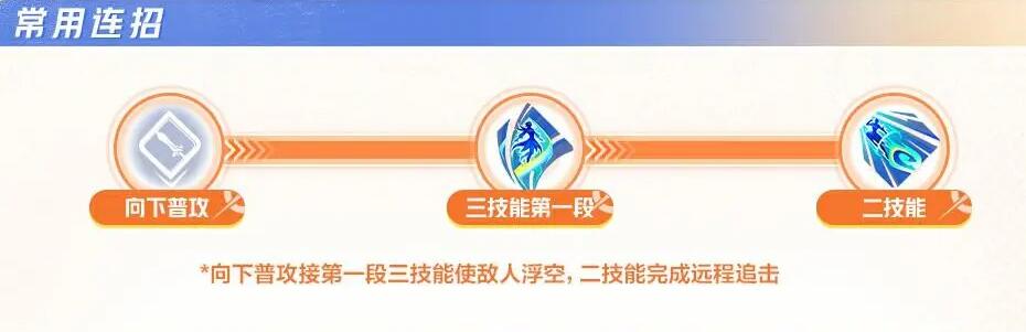 向下普攻接第一段三技能击飞敌人,然后二技能连招远程攻击。