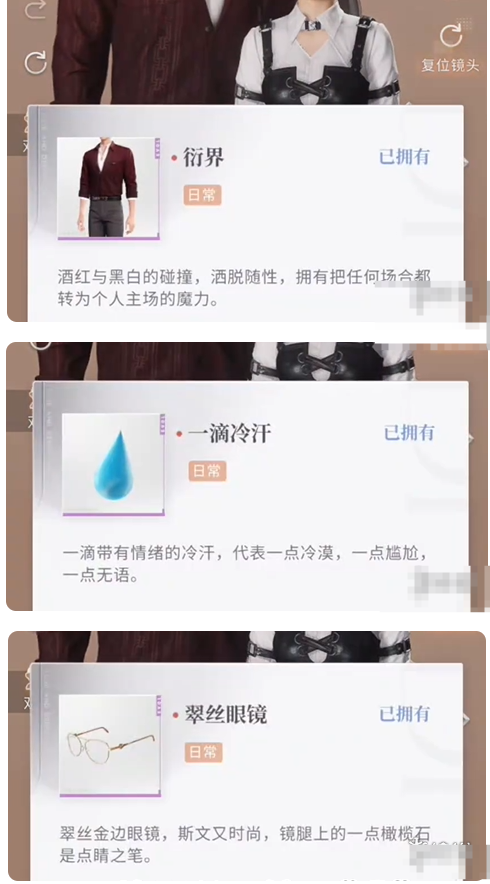 2、秦彻服饰选择衍界、配饰选择一滴冷汗和翠丝眼镜。