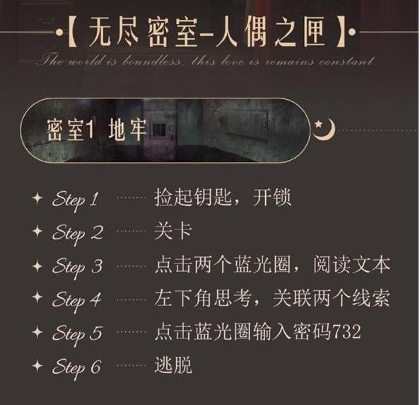 一、世界之外人偶之匣密室1地牢通关步骤如下: