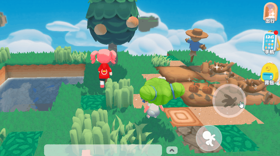 小石头也是一样的,走到家园里的石头附近互动按钮就会变亮,踢一踢小石头就会掉下来啦。
