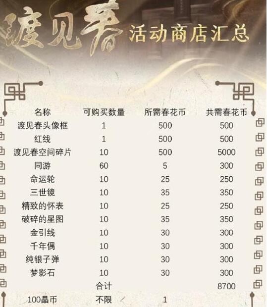 3、渡见春活动商店如下,及时兑换活动奖励。