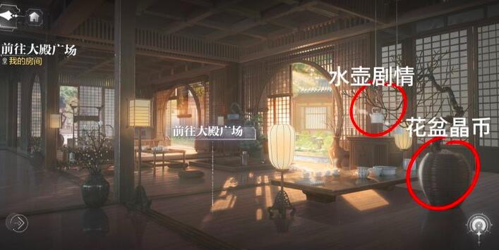 2、在这里点击水壶会触发隐藏的剧情,点击花盆可以得到晶币。