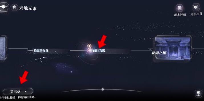 7、之后来到第三章,选择探索秘境的位置进入剧情。