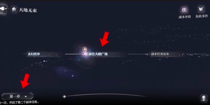 1、首先进入天地无束的第一章,选择前往大殿广场的场景。