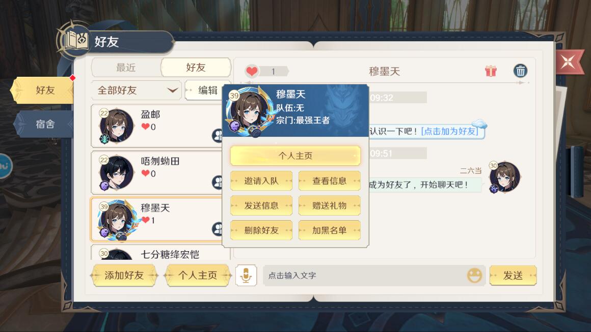 5、添加好友后就可以邀请好友入队或者入宗挑战副本了