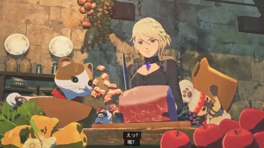 猎人一行人在绯红森林的大本营遇到来自亚兹拉尔王国的皇家艾露猫“鲁迪”。