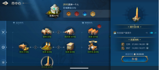 铁矿、石料是城建玩法的消耗大头,粮食则是招募士兵的消耗大头,算是游戏中最核心也需求量最大的资源类型。