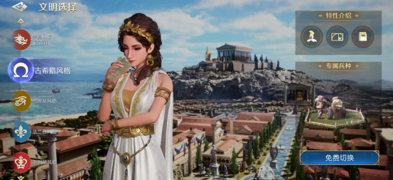 古希腊文明的文明特性是民兵征兵速度增加5%,这个特性不能说不好,但得在资源足够的情况下才有明显的收益,对于比较休闲和资源紧张的玩家来说没啥用。