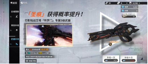 2、目前最主要获取方式和角色一样,都是通过补给来得到,角色主要通过常驻补给以不同池子获得,而装备这是在武器补给中抽取。