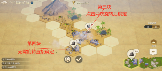 完成地块任务的同时,放置完所有地块即可通关(可旋转地块,但地块顺序不可逆)。