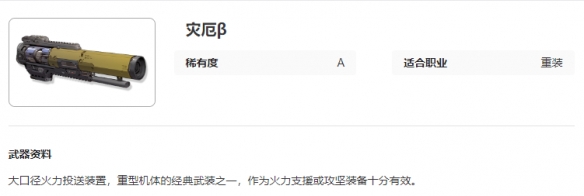 《艾塔纪元》灾厄β图鉴介绍,大口径火力投送装置,重型机体的经典武装之一,作为火力支援或攻坚装备十分有效的武器,下面小编给大家带来艾塔纪元灾厄β图鉴介绍,有需要的小伙伴一起来看看吧。