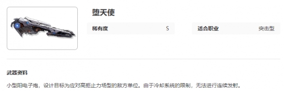 《艾塔纪元》堕天使图鉴介绍,小型阳电子炮,设计目标为应对高拒止力场型的敌方单位的武器,下面小编给大家带艾塔纪元堕天使图鉴介绍,有需要的小伙伴一起来看看吧。各位玩家可以参考一下。