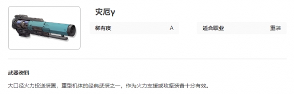《艾塔纪元》灾厄γ图鉴介绍,大口径火力投送装置,重型机体的经典武装之一,作为火力支援或攻坚装备十分有效的武器,下面小编给大家带来艾塔纪元灾厄γ图鉴介绍,有需要的小伙伴一起来看看吧。