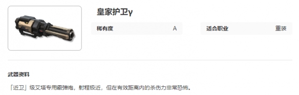 《艾塔纪元》皇家护卫γ图鉴介绍,「近卫」级艾塔专用霰弹炮,射程极近,但在有效距离内的杀伤力非常恐怖。下面小编给大家带来艾塔纪元皇家护卫γ图鉴介绍,有需要的小伙伴一起来看看吧。