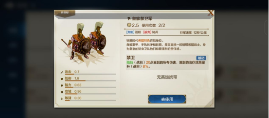 被动为:禁卫(格挡(战前)20点受到的所有伤害,受到的治疗效果提升(战前)8%)