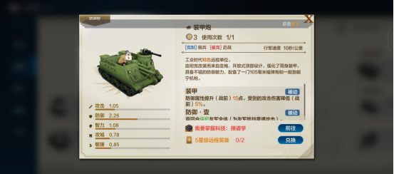 装甲炮攻击属性低下,但防御性能上极为突出,智力属性也远超前二者,被动更是全往坦度和防御上堆,可以说三个兵种中最肉的。
