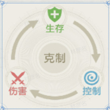 在游戏中关于部队配置方向我们大体分为三类。1.以依赖技能输出或增伤、追击为主的-伤害队。2.以治疗、减伤、闪避为主的生存队。3.以控制手段,对敌方目标施以沉默、混乱、晕眩等手段的控制队。当对战双方战力、练度大体相同时,队伍配置倾向往往能决定战斗的胜负。即伤害队克制生存队,生存队克制控制队,控制队克制伤害队。