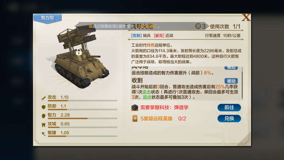 这里选择把加冕给她,是因为她是远程英雄,可以携带提供追击效果的兵种风琴坦克。