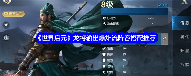 以上就是小编整理带来的《世界启元》龙将输出爆炸流阵容搭配推荐,更多精彩内容,请点击关注手游网,小编将持续为您更新!