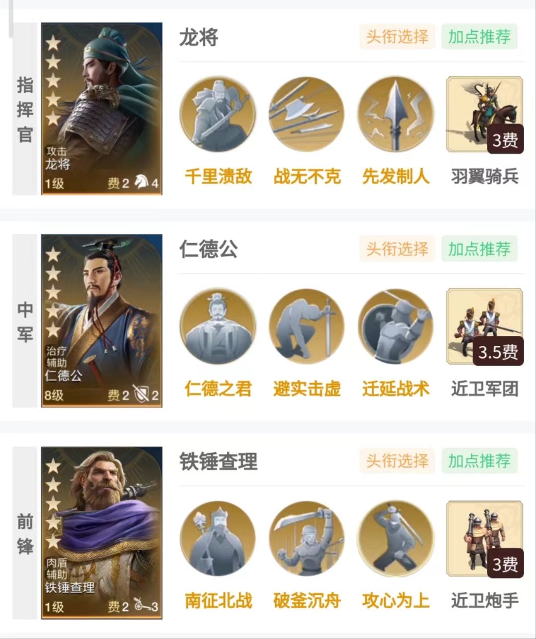 推荐配队如下,兵种建议使用每个时代的推荐兵种!