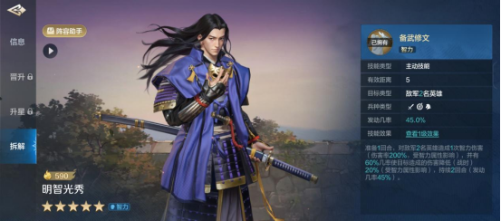 下面,对还不熟悉明智光秀的小伙伴,就来看看他的技能与搭配介绍吧。