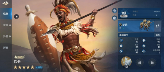 恰卡定位是辅助,率领的兵种类型是近战,攻击距离为2,极短。面板数值方面中等,核心智力初始为85中上,防御与敏捷一般。