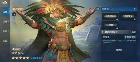 特诺奇蒂特兰:造成的治疗效果提升(战前)8%,自带技能发动几率提升4%