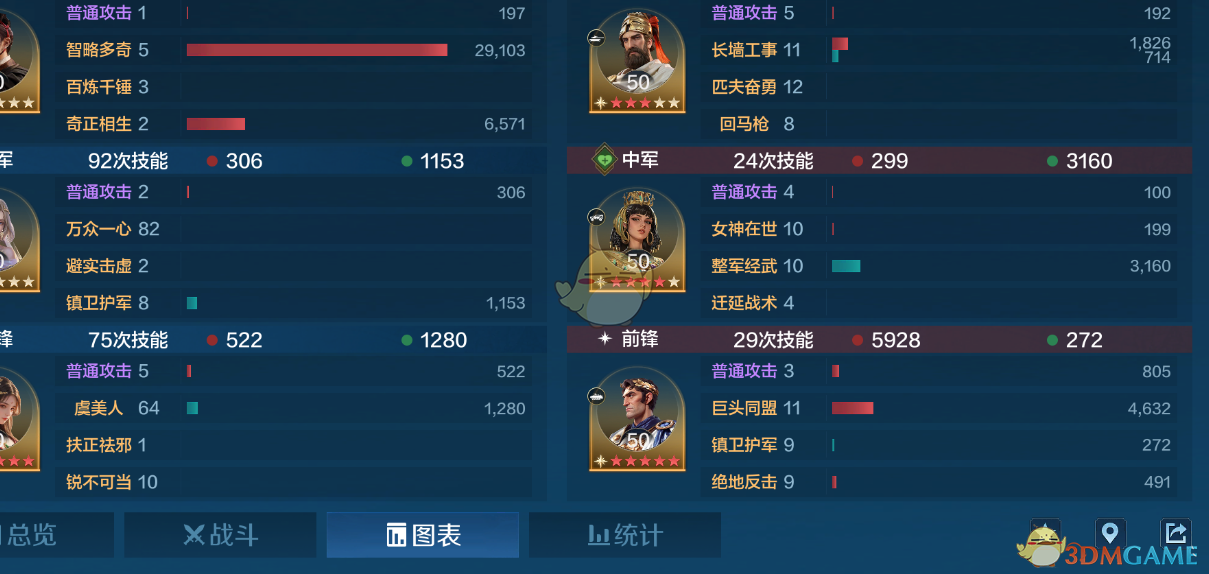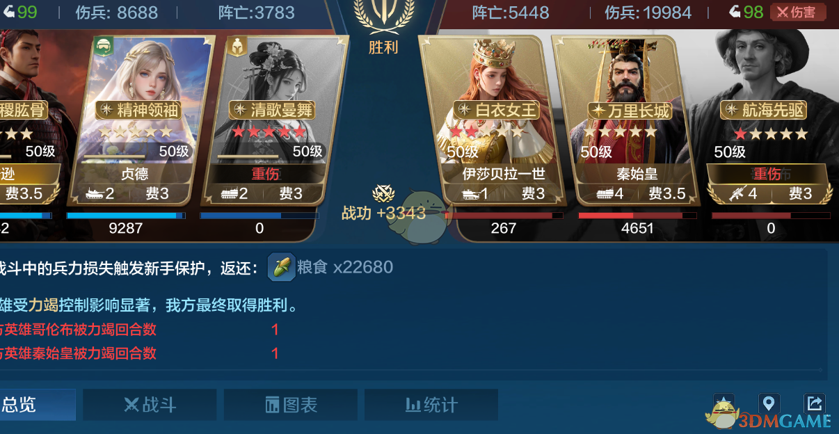 (2) 贞德携带镇卫护军和避实击虚:这两个技能可以让我们更好得克制爆发阵容,即使伊莎贝拉的普攻为1只能打我军前锋但是镇卫护军依旧可以让伊莎贝拉一世的普攻作用在贞德身上,这样前锋就不会被集火秒掉。