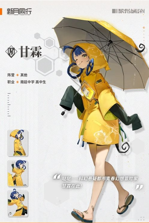 战斗开始时,甘霖增加自身5%闪避率;当队 友受到单个敌人攻击时,将为对方提供援 护,该效果每回合生效1次;在进行援护时, 甘霖增加自身50%闪避率。