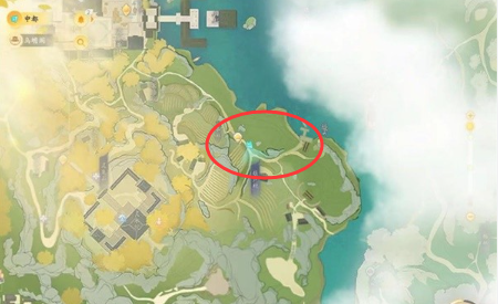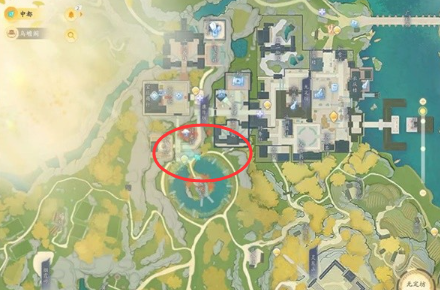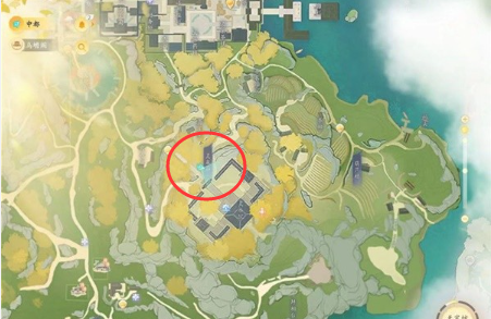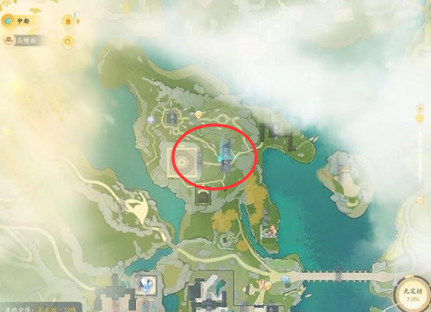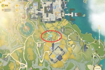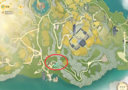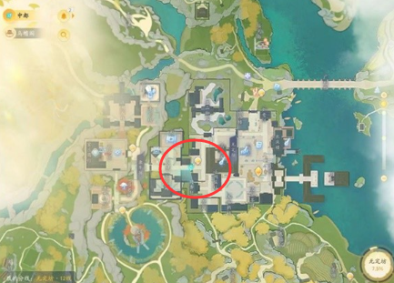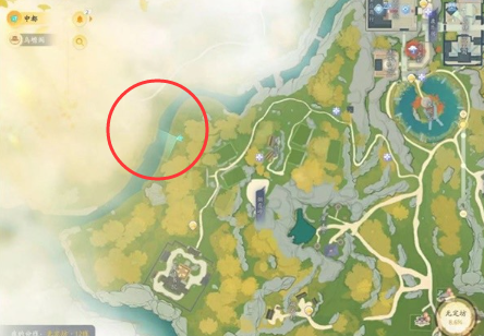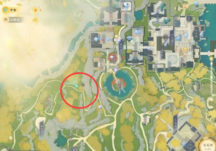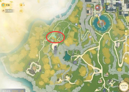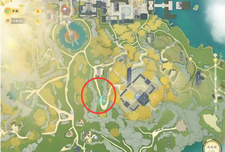 位置十九:在【灵犀亭】,猛兽在岔路口的陆地位置。