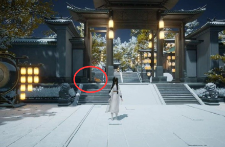 位置十五:在【烟霞岭】,猫咪会在建筑门口的位置;