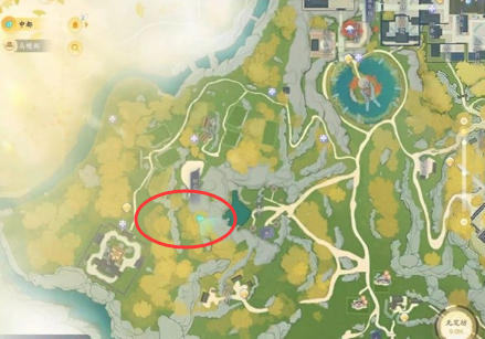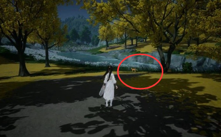 位置一:在【见春亭】,猛兽猫咪就在河边的树底下满;