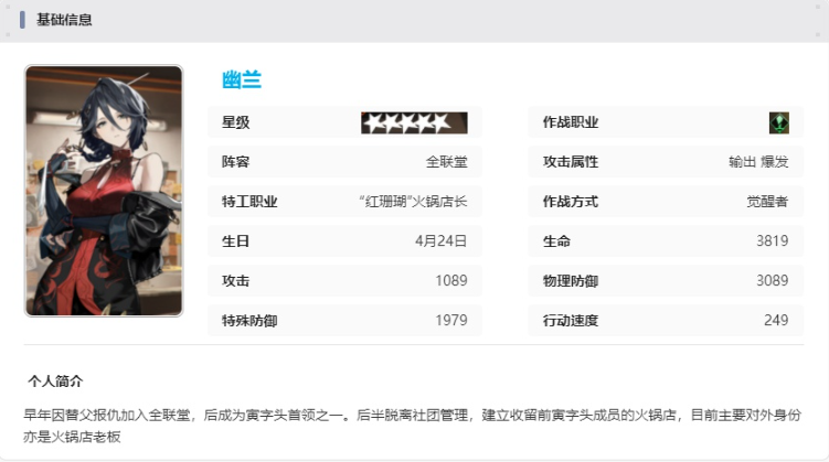 幽兰对敌人造成系别克制伤害时,增加自身15%暴击率,若场上有存活的全联堂阵营队友,幽兰再增加自身5%暴击率