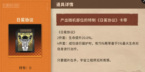 4件套:每个行动序列首次受到伤害时,减少10%所受伤害。