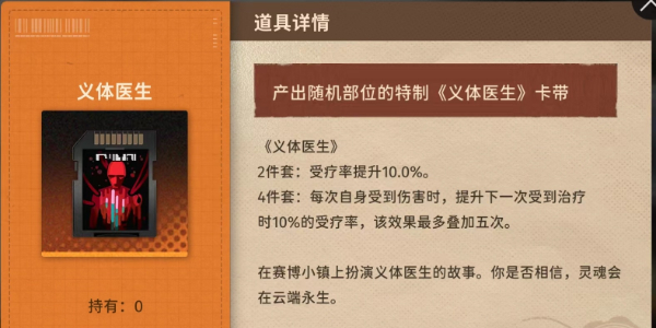 4件套:进行治疗时,若受疗者生命低于50%,增加20%自身治疗率。若生命值低于30%,再提升20%治疗率。