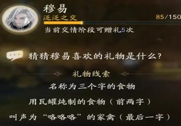 以上就是小编整理带来的射雕穆易喜欢的礼物是什么-穆易喜欢的礼物叫什么分享,更多精彩内容,请点击关注手游网更新!