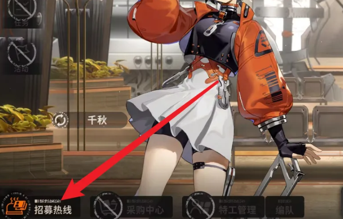 2、进入招募热线界面后,点击图中的道具拉下挡杆