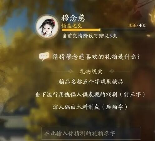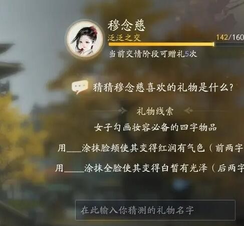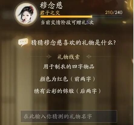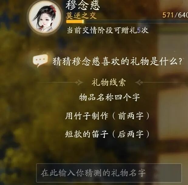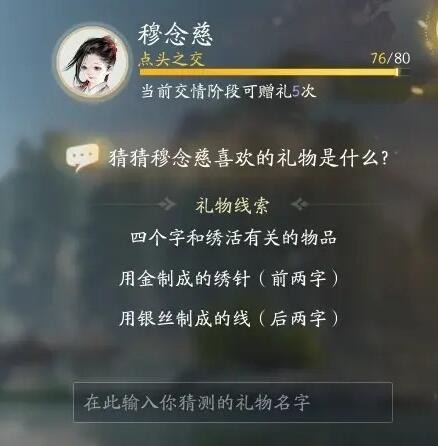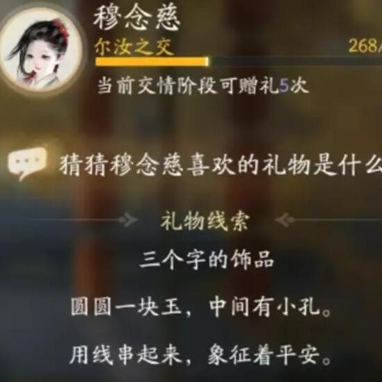 以上就是小编整理带来的射雕穆念慈喜欢的礼物是什么,穆念慈喜欢礼物线索大全分享,更多精彩内容,请点击关注手游网更新!