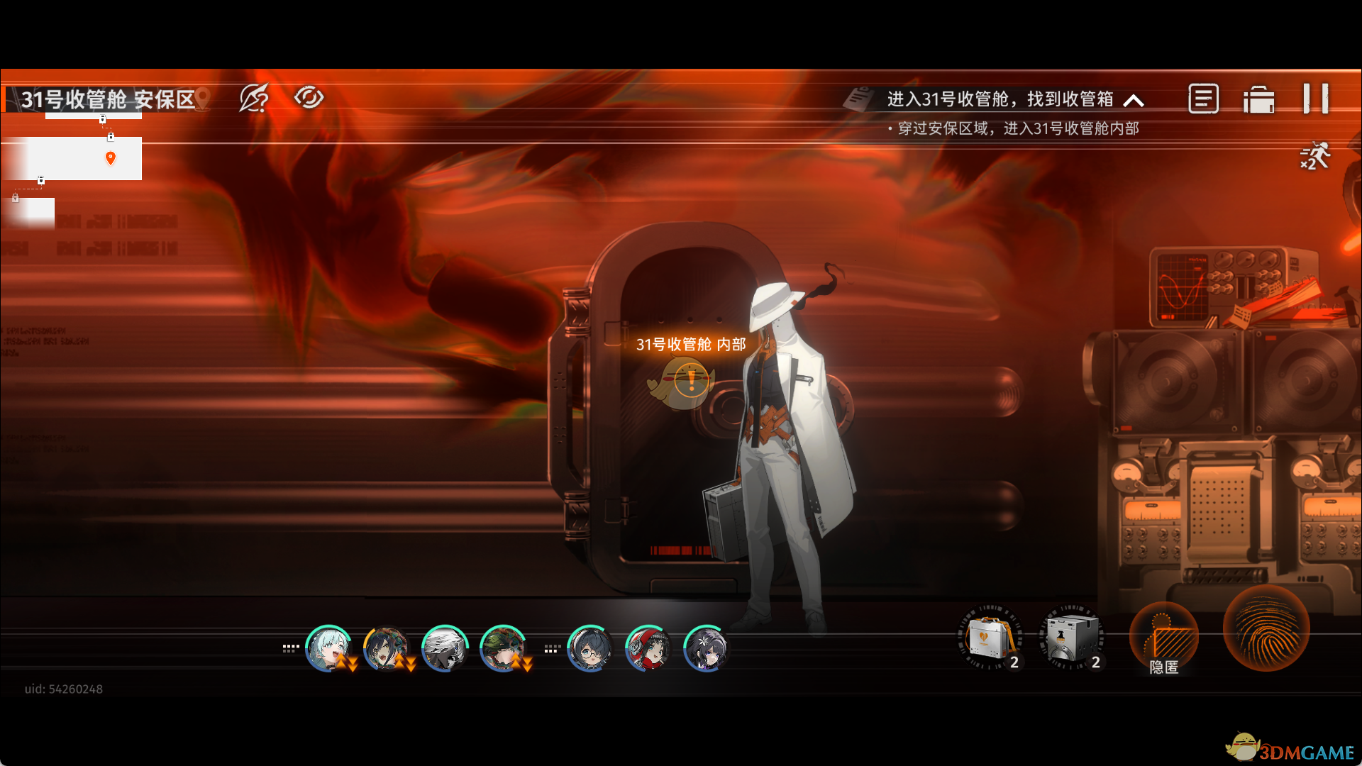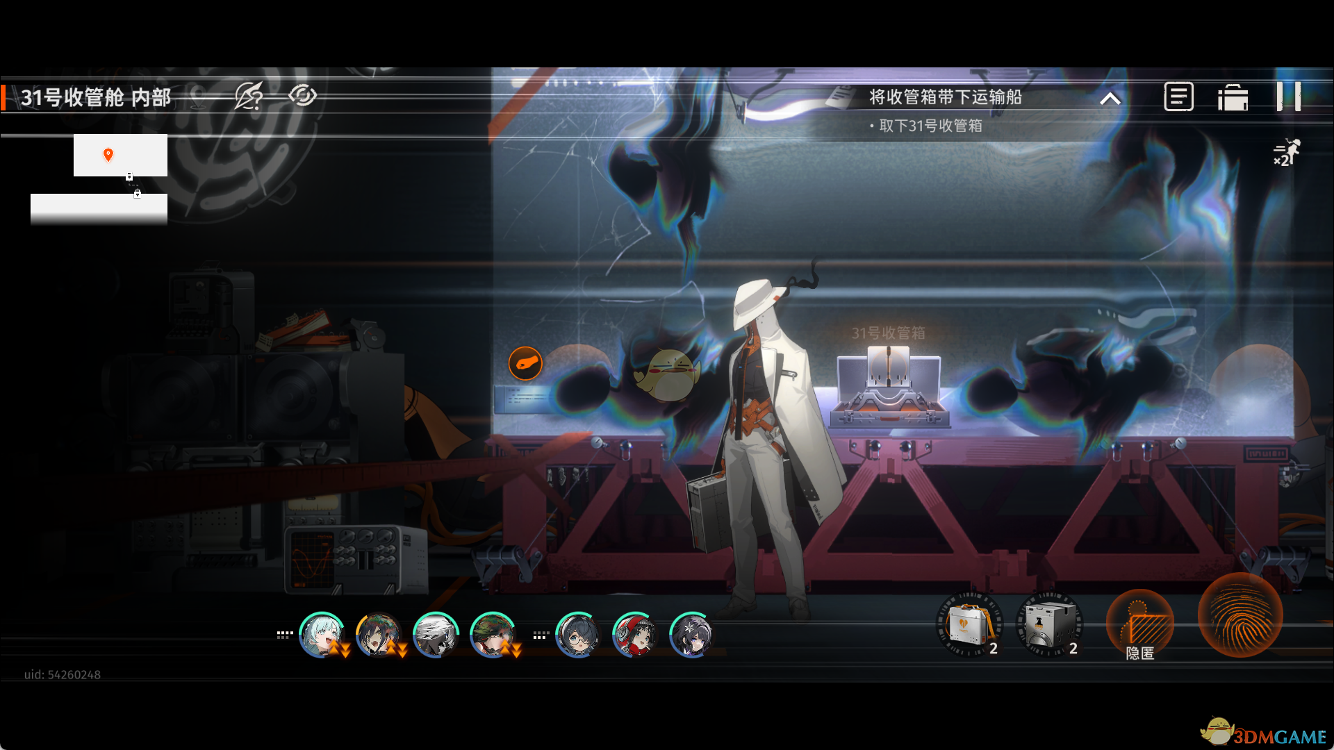 2、触发剧情获得线索14,损坏的随身设备,点击交互点得到线索02,31号收管物信息卡和线索15,31号收管箱。