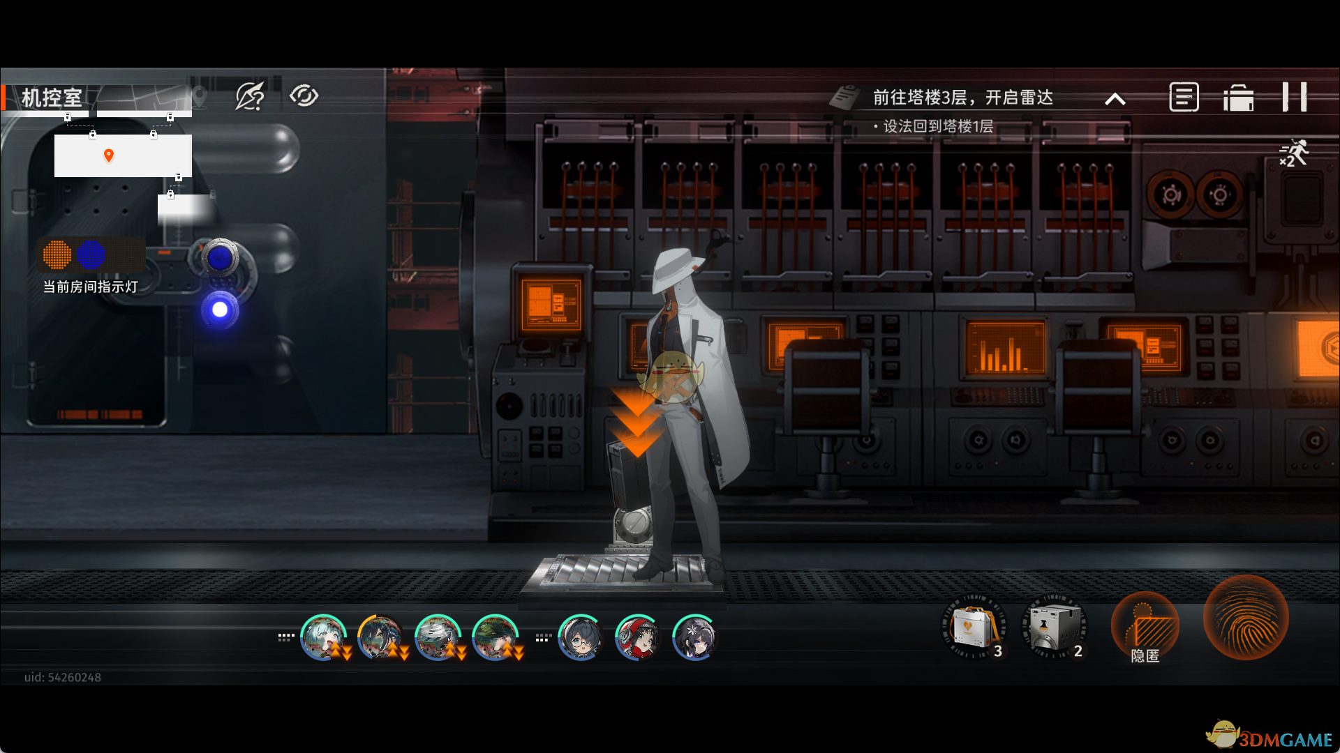 8、回到牢门调整并联合中控台,同时点亮电话机,再次交互即可获得线索13,16号频道的通话(3/3)。
