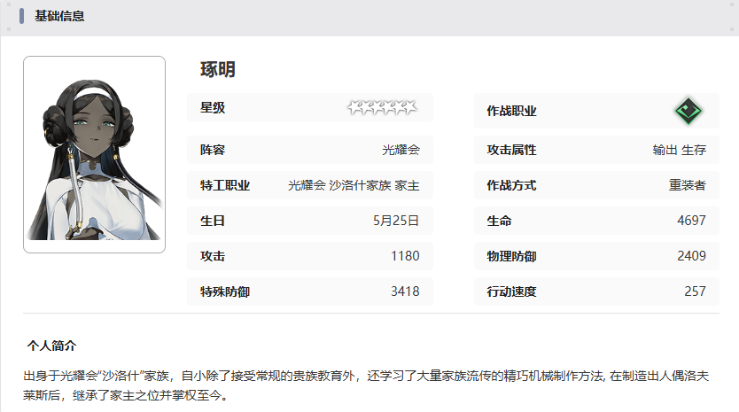 琢明出身于光耀会“沙洛什”家族,自小除了接受常规的贵族教育外,还学习了大量家族流传的精巧机械制作方法, 在制造出人偶洛夫莱斯后,继承了家主之位并掌权至今。接下来就由小编给大家带来了详细的《新月同行》琢明技能介绍,大家一起来看看吧