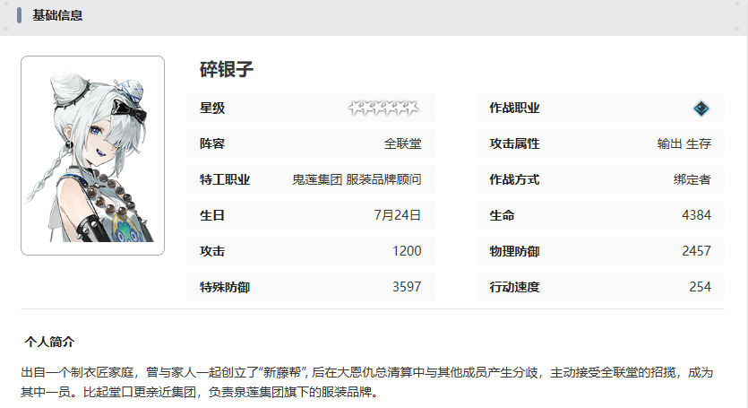 碎银子出自一个制衣匠家庭,曾与家人一起创立了“新藤帮”, 后在大恩仇总清算中与其他成员产生分歧,主动接受全联堂的招揽,成为其中一员。比起堂口更亲近集团,负责泉莲集团旗下的服装品牌,接下来就由小编给大家带来了《新月同行》碎银子技能介绍。