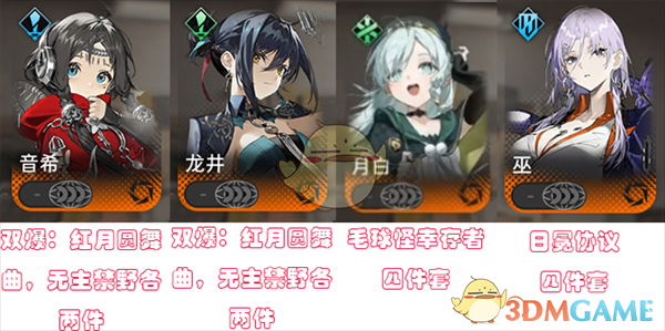 推荐阵容:月白(或朝颜)+音希 + 龙井 + (银峰/巫)。括号内为备选替换角色。