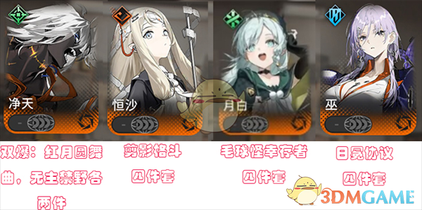 推荐阵容:月白(或朝颜) + 恒沙 + 净天(或千秋) + 巫(或忠元)。括号内为替换选项。