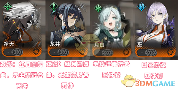 推荐阵容:月白(或朝颜)+ 净天 + 音希 → 鸦(或千秋) + 龙井 + 巫。括号内为备选替换。