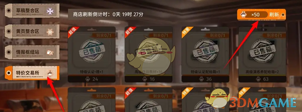 答:前往特价交易商店,点击右上角的刷新,消耗物品即可完成商店的刷新