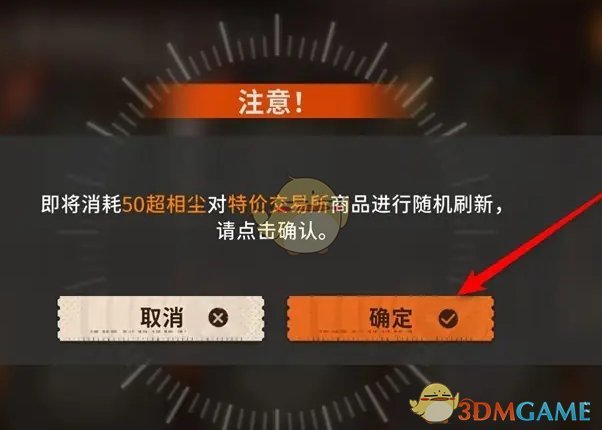 3、接着在提示页面,消耗超相尘,点击确定即可刷新交易所商品;