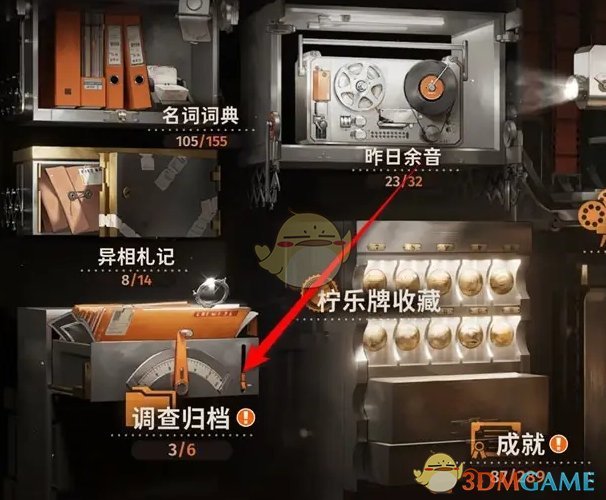 2、然后在档案室内,点击左侧的调查归档玩法前往;